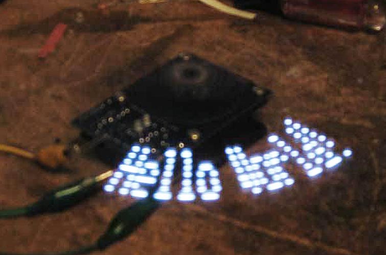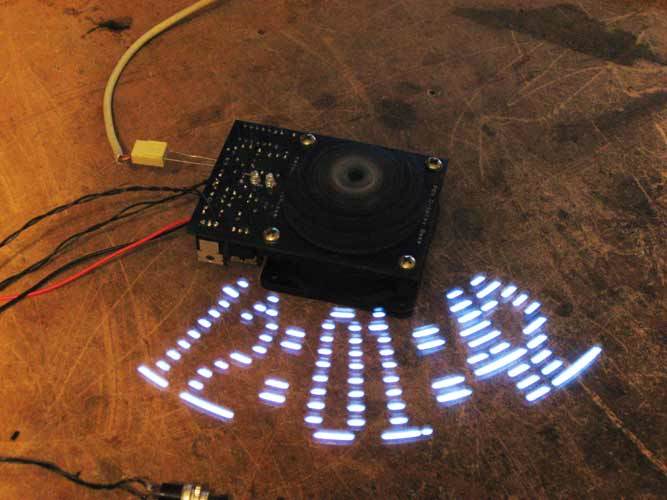 RS232 transmissions can be sent to the POV display for messages or possibly pixel graphics. The display can be used to show a 360-degree scrolling message stream from your PC. Example Arduino code for the POV display is provided on www.electronixandmore.com. Be sure to check out the video!