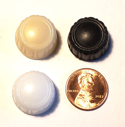 New reproduction resin knob available in multiple colors for 1940 Admiral, Mantola and Truetone radios made by Continential Radio & Television Corporation (CR&TC). Some models had contrasting knob colors rather than same color as case.