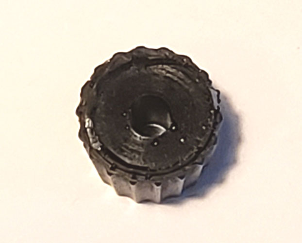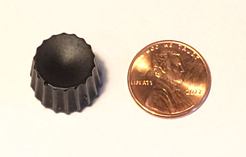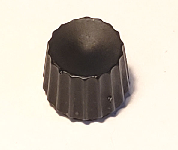 New reproduction resin black knob for 1950s to early 1960s British Radiomobile car radios used in Rover P4 and P5 models, possibly other British brands including Rolls-Royce, Bentley and Jaguar. Includes Radiomobile model 4220 (1955), 500T (1961), and possibly HMV 4100, HMV 4200. A small piece of cardboard or dab of glue may be needed to secure the knob on shaft.